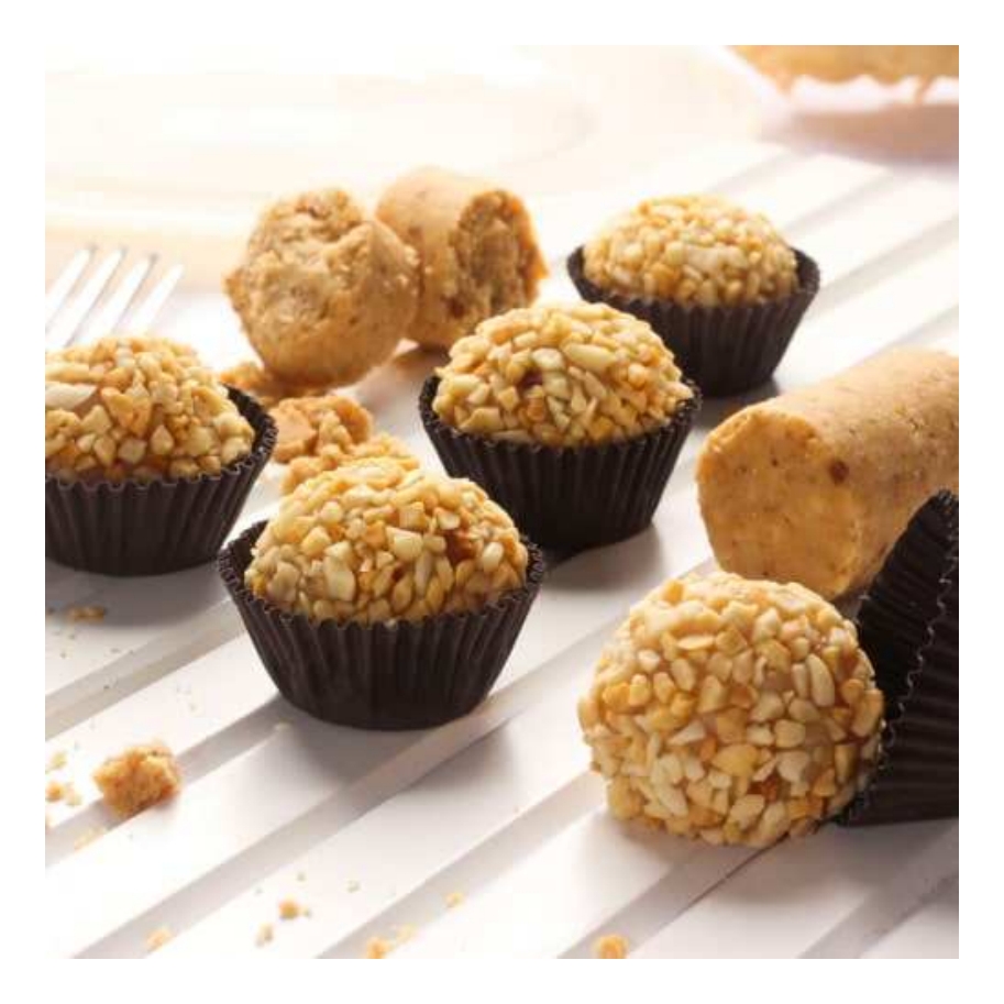 Aplicação em buffets de sorvetes e milkshakes e em receitas de confeitaria como recheio, cobertura ou decoração de bolos, tortas e pães. Em chocolateria é utilizado como inclusão em recheios de chocolates, ovos de Páscoa, bombons, entre outros.