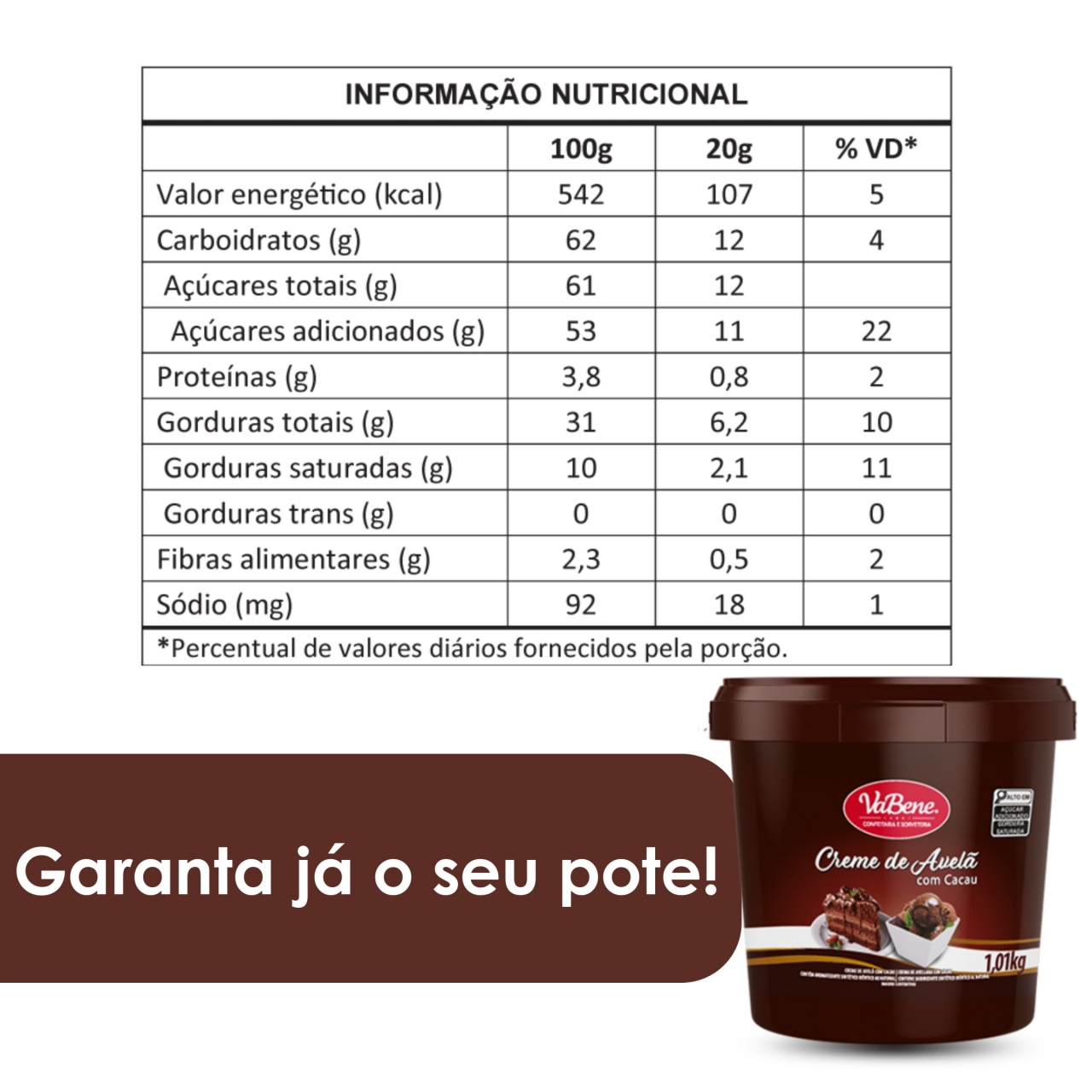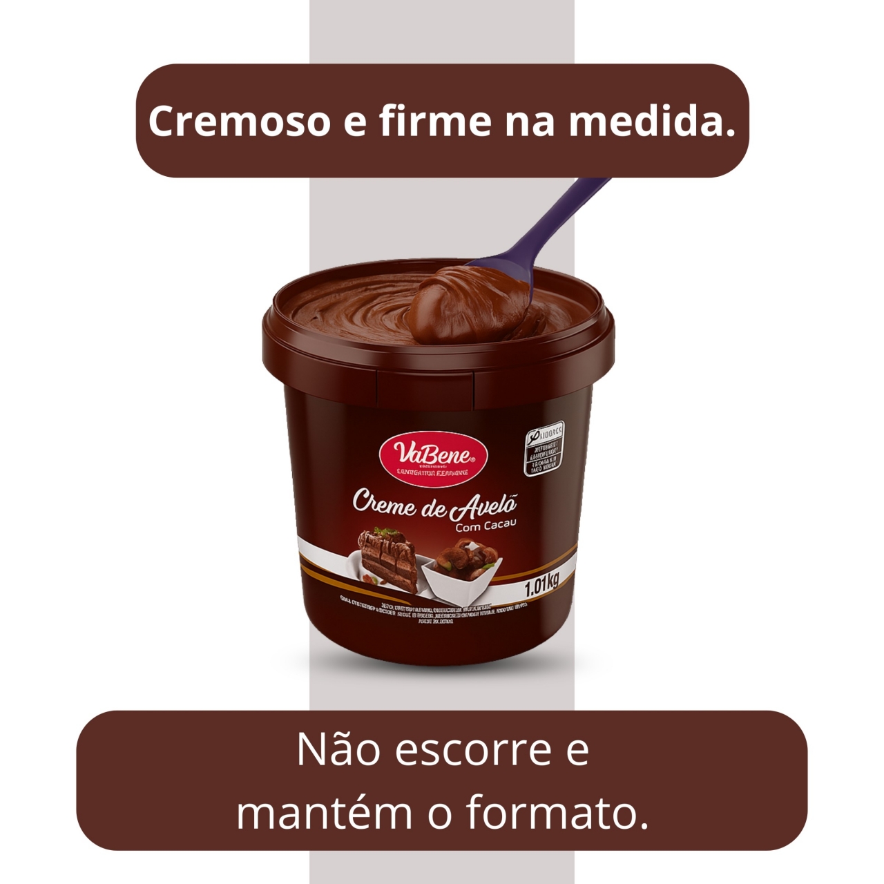 . Textura lisa e cremosa com sabor marcante de avelã e cacau.