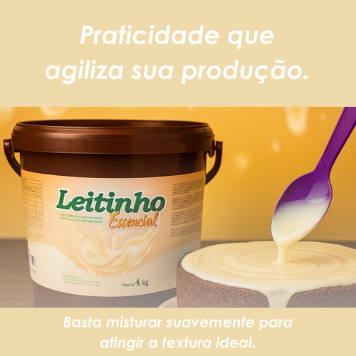 Leitinho Essencial é um creme de textura fluida e sabor suave, desenvolvido para aplicações profissionais em confeitaria e sorveteria. Pronto para uso, oferece rendimento elevado, acabamento uniforme e padronização na produção. É a escolha ideal para quem busca praticidade, economia e qualidade constante.
