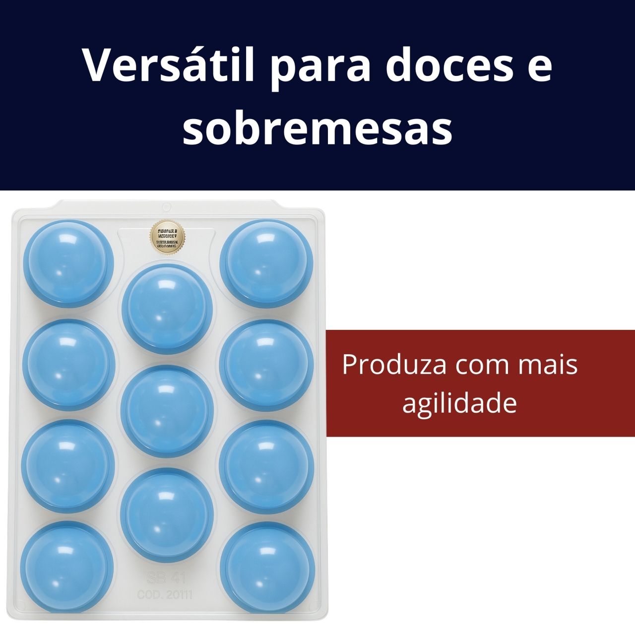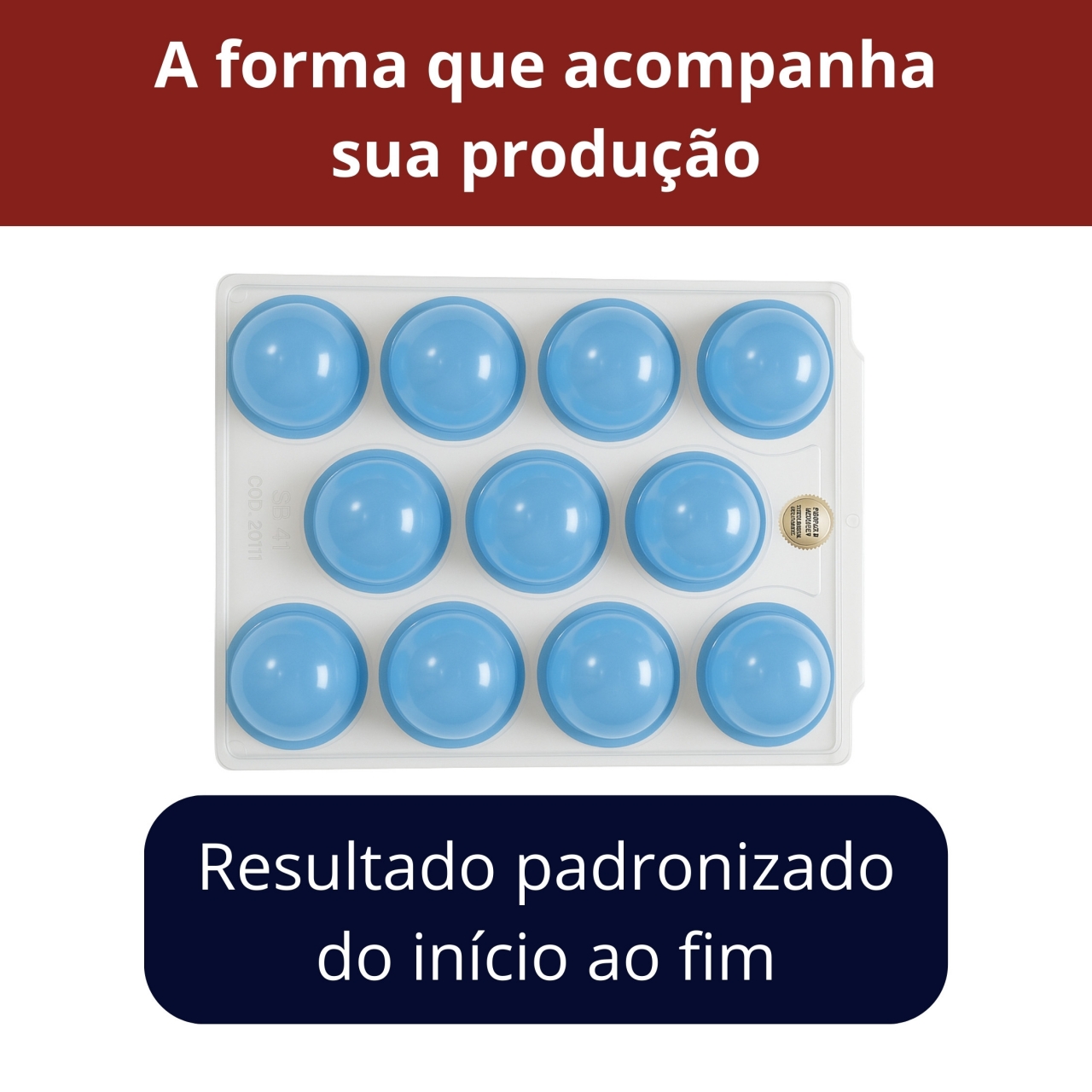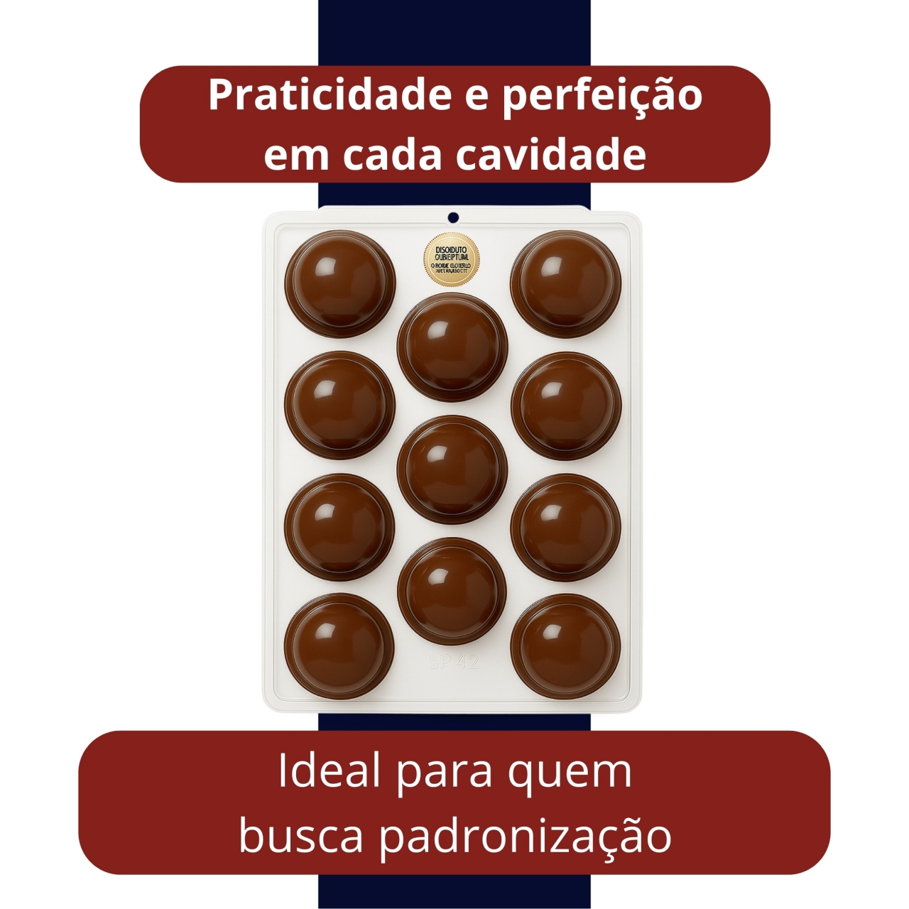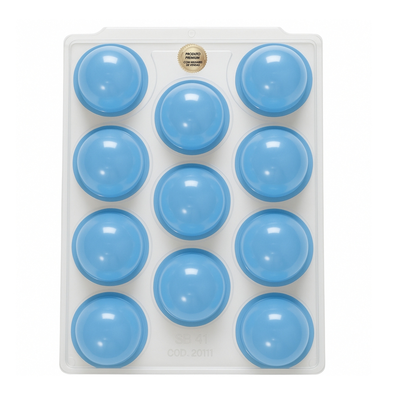 Forma plástica para confecção de trufas, bombons e sobremesas com 11 cavidades de tamanho grande. Produto durável, leve e fácil de usar em confeitaria artesanal ou profissional.