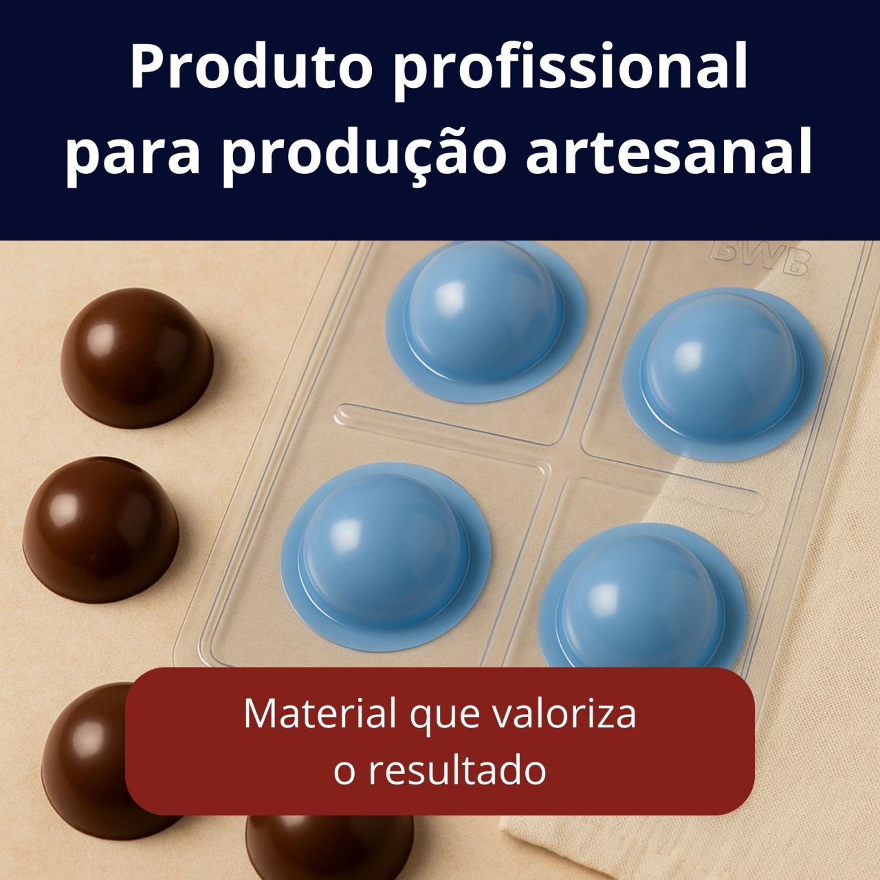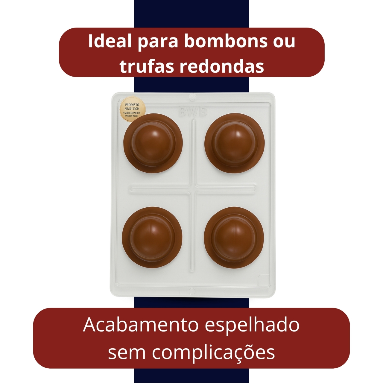 Forma desenvolvida para produção de trufas grandes com acabamento profissional. Ideal para confeiteiros que trabalham com chocolates recheados e doces de maior gramatura.