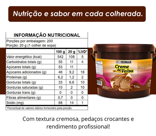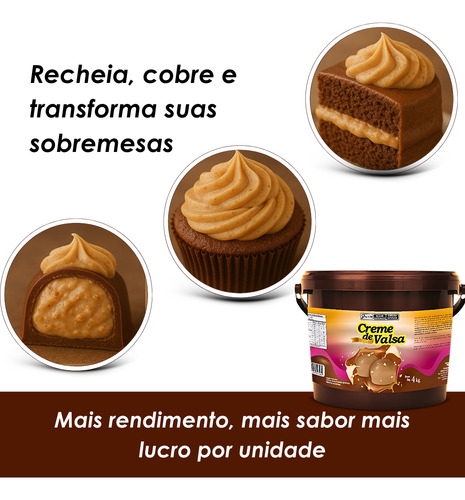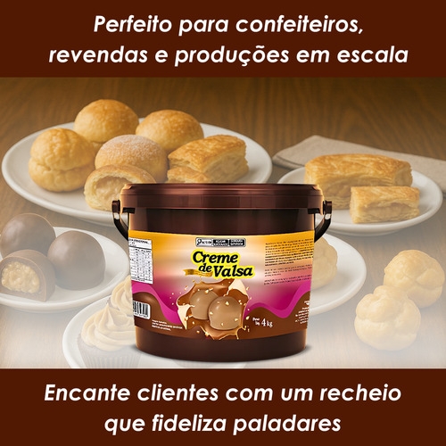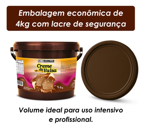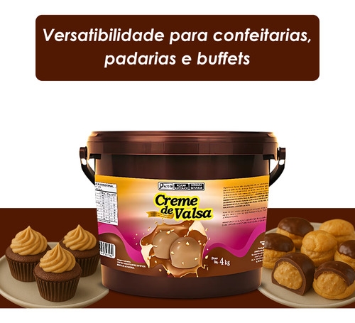 creme de valsa 4kg, creme chocolate branco com amendoim, recheio pronto para uso, cobertura profissional para confeitaria, topping para bolos e açaí, produto food service, creme resistente ao congelamento, creme para sorvete, balde 4kg, creme para recheio e cobertura