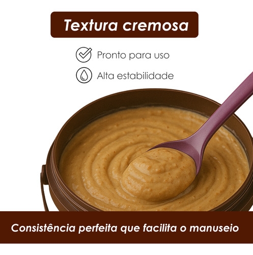 Para maior fluidez, aqueça em banho-maria até 35 graus Celsius e misture suavemente antes da aplicação.