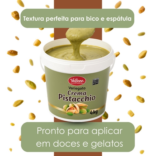- Se você busca um toque gourmet com rendimento profissional para suas receitas, a Pasta Gourmet de Pistache VaBene é a escolha certa. Ela une sabor marcante, textura sofisticada e praticidade em uma única solução. Ideal para confeiteiros, docerias e negócios que prezam pela apresentação impecável e sabor diferenciado.