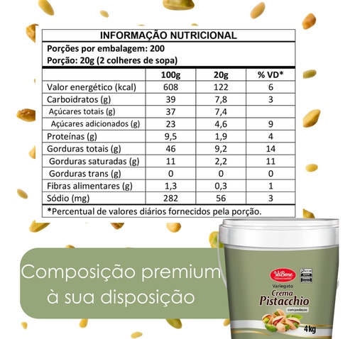 - Textura cremosa com pedaços crocantes de pistache real