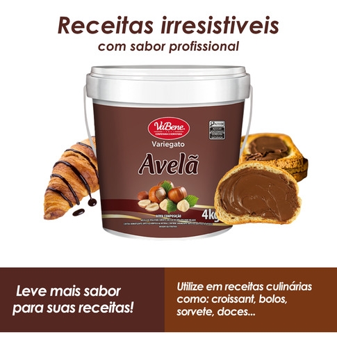 variegato avelã 4kg, creme avelã food service, cobertura gourmet avelã, variegato sorveteria, recheio avelã VaBene, recheio avelã 4kg, creme de avelã para bolos, recheio gourmet confeitaria, cobertura confeitaria profissional, recheio torta va bene