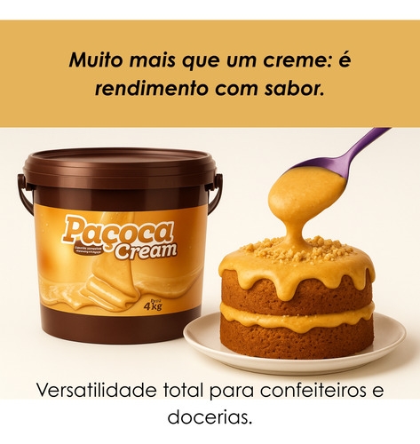 creme de paçoca 4kg, paçoca cream, recheio de amendoim, balde industrial, cobertura de paçoca, recheio profissional, creme com pedaços, food service, ingrediente confeitaria, creme de amendoim com pedaços, paçoca gourmet, doces industriais, panificação, produto para sorvete, recheio para bolo, açaí, chocotone.