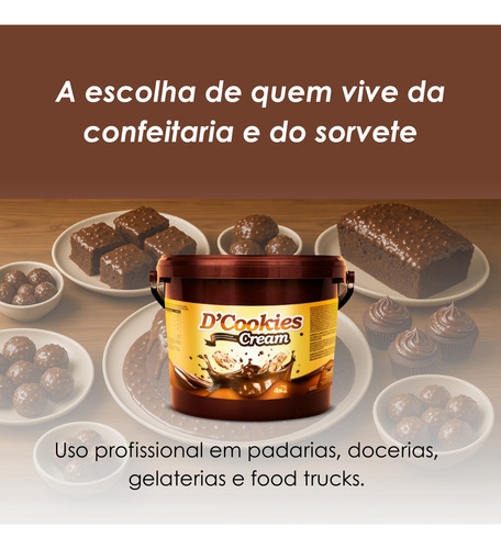 recheio chocolate cookies, recheio com biscoito, pasta confeitaria, recheio para sorvete, cobertura de cookies, recheio cremoso 4kg, food service chocolate com biscoito