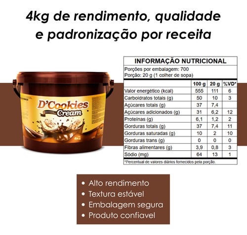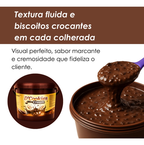 Sua composição cremosa com pedaços crocantes de biscoito proporciona uma experiência sensorial diferenciada, valorizando qualquer receita.