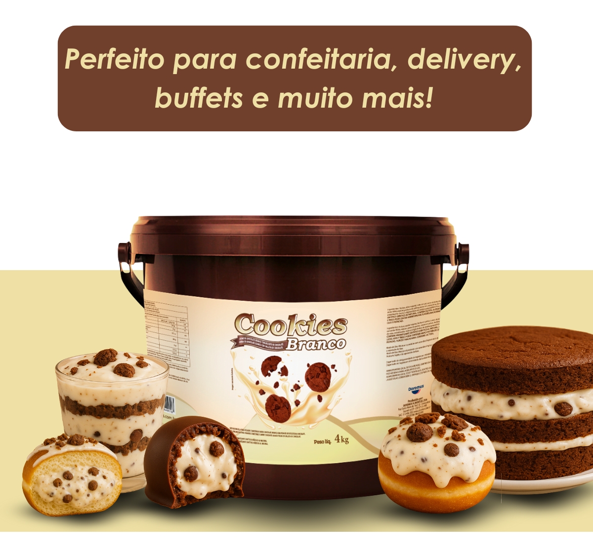 O Recheio Cookies Branco com Pedaços de Cookies foi desenvolvido para trazer sabor artesanal e praticidade na confeitaria profissional. Ideal para quem busca rendimento, textura diferenciada e padronização em suas produções.