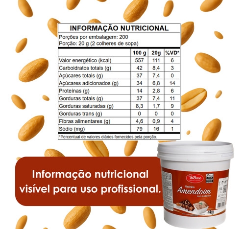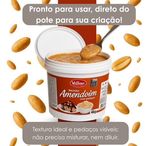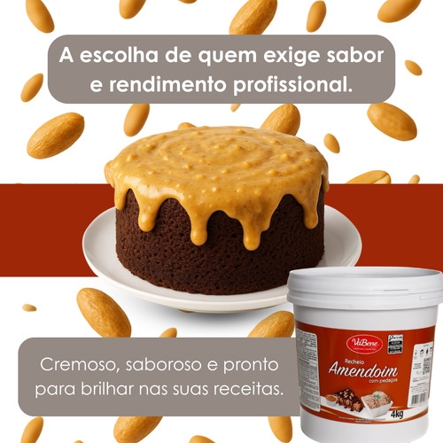 recheio de amendoim vabene 4kg recheio com pedaços confeitaria profissional uso food service padarias recheio artesanal pronto bolos tortas churros sobremesas geladas confeitaria industrial